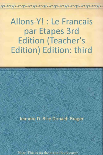 This is the Teacher's Annotated Edition. Over a quarter of a million students have been introduced to French language and culture using Allons-y! This edition retains the features that have made Allons-y! work so well in the classroom: the focus on communication, the etape structure, intensive and systematic recycling.